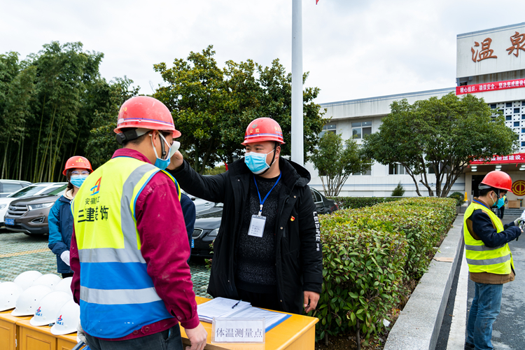 項目部對所有進場人員實名登記,摸排項目所有施工人員家庭住址,有無感染接觸史等清況。裝飾公司安全科科長胡成紅、安全員衡武坤負責(zé)每天定時在施工現(xiàn)場門口、餐廳測量體溫并登記。他們還在現(xiàn)場監(jiān)督檢查,反復(fù)提醒工人正確佩戴口罩,經(jīng)常洗手。