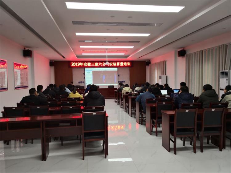 2019年1月5日星期六上午,六公司在公司合肥軌道交通4號線4標項目會議室舉辦了2019年的第一場內(nèi)部培訓,也是安裝算量培訓,分公司領(lǐng)導班子、項目經(jīng)理、核算員、技術(shù)負責等40人參加了培訓。
