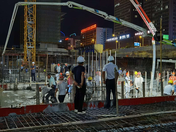 【勞動(dòng)競(jìng)賽在三建】連續(xù)澆筑41小時(shí)!金寨明發(fā)超高層項(xiàng)目A樓筏板基礎(chǔ)順利完成大體積混凝土澆筑